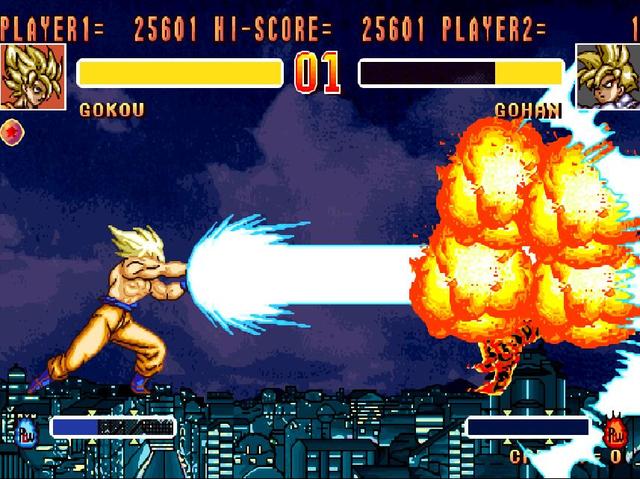 这种类似激光炮的攻击方式,在游戏中就非常普遍了。光是《超级漫画英雄VS卡普空》中就有一大堆了,另外在《龙珠Z超武斗大会》中是所有人都具备的技能。