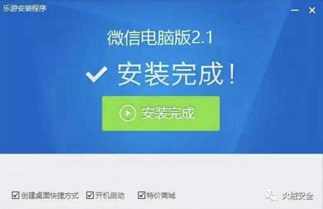 注意左上角是乐游安装程序,该安装包不但不是“微信电脑版”的安装包,而且安装过程中还有很多默认勾选框。