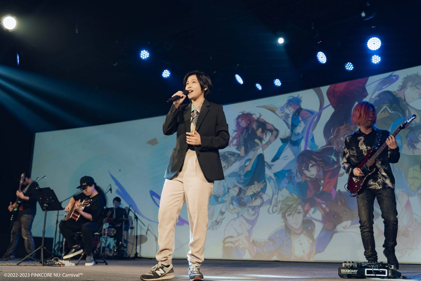 「Neon Carnival」以声光效果展现出《新世纪狂欢》的游戏魅力。除了音乐演出外,现场也特地邀请到饰演游戏主人公「伊得」的「刺草ネトル」,以及饰演眷属「奥利文」的声优「一夜爱」,与玩家们大方分享自己在《新世界狂欢》的配音心得以及对于饰演角色的种种情感。