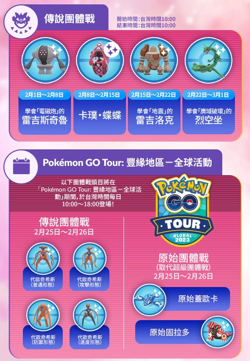 导读 由美国 Niantic 目前营运中的《Pokémon GO》,随着最新一波「Pokémon GO Tour:丰缘地区 全球活动」即将自 2 月 25 日起至 2 月 26 日开幕,官方除了预告基拉