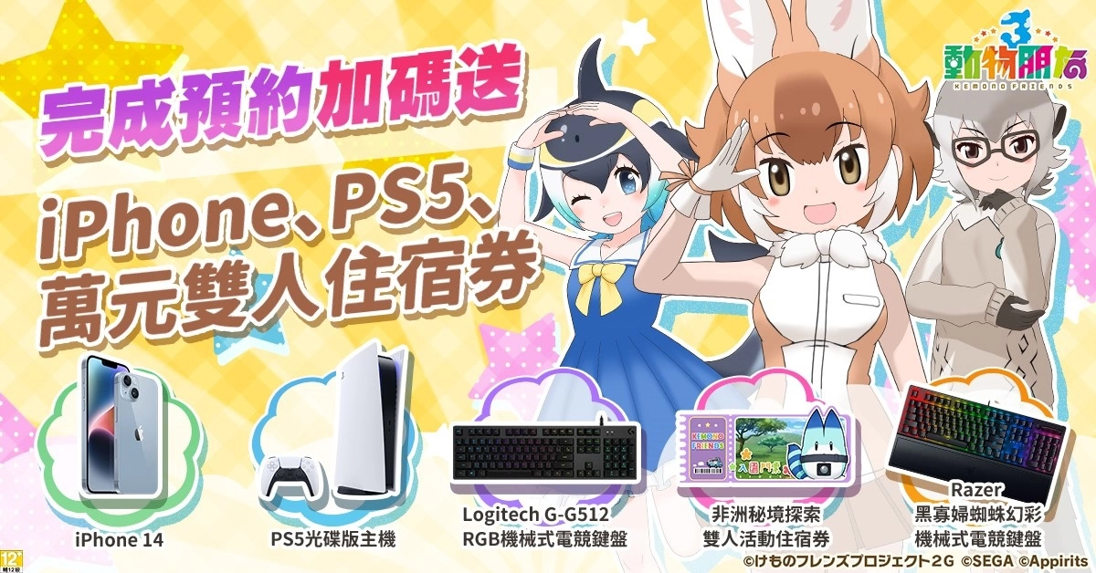 「动物朋友 3 特别感谢祭」,加码再送 iPhone14、PS5、万元双人住宿券以及电竞键盘,只要完成手机预约,就有机会获得,活动仅到 3/14 开服前,还没完成手机号码预约的朋友,也别错过众多好康的预登奖励及抽奖机会喔!