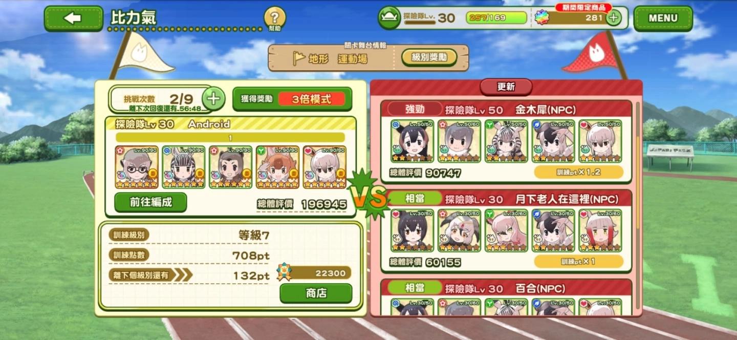 在游戏机制上,除了战斗机制外,也加入了不少互动型的游戏社群机制,比如在比力气(PVP)的机制上,完成比力气活动,随着时间更换赛季,可以获得闪亮亮、训练奖牌,训练奖牌也可以兑换各种队长技能和成长素材。