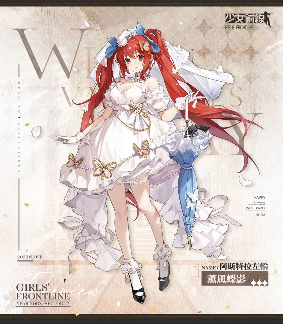繫着缎带与头纱的小礼帽,蝴蝶点缀的蓬蓬裙,以及淑女必备的可爱阳伞!落英缤纷又怎样,我的华丽程度可不会输!活动期间完成任务获取积分,满足积分需求即能获得阿斯特拉左轮白情主题装扮「薰风蝶影」。