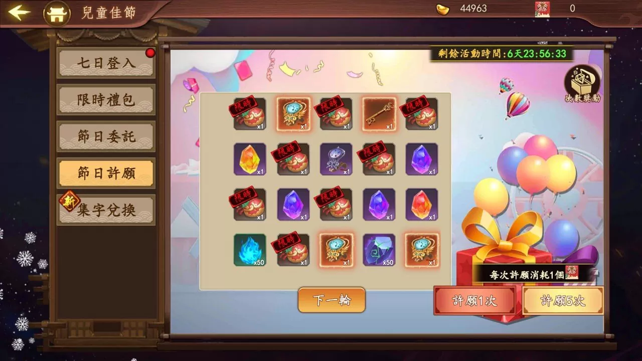 就算是流传千年的经典文物,内心也还是住着一个小朋友呢!3/31~4/6间,每日登入可领取好礼,每天登入不缺席,还能直接带走 SS 伙伴自选!完成指定任务还能进行许愿获得集字礼包,丰富好礼拆到手软。