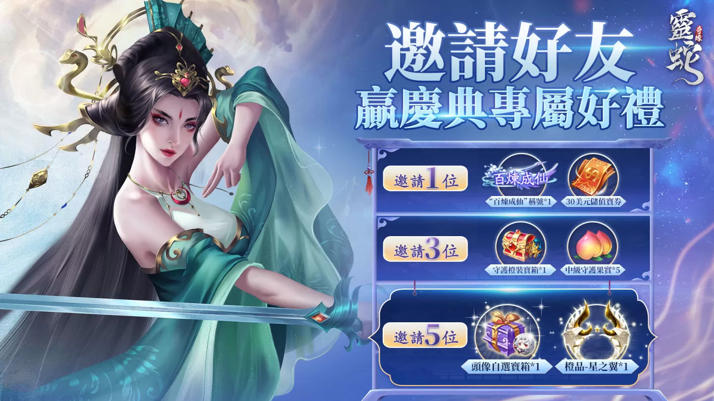 百日庆典活动【炼仙百日,同赴仙途】(https://bit.ly/3KtQfaK)举行期间,仙主可以通过首日登入的方式免费获得包括「神侍-嫦娥玉兔(永久)」、「100美元储值宝券」在内的多重丰厚奖励。