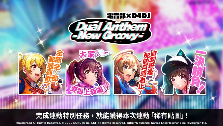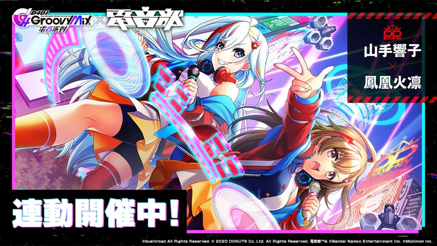 由移动怪兽代理,日本人气娱乐公司「武士道(Bushiroad)」和「DONUTS」开发的首款女DJ电音手游《D4DJ Groovy Mix 电音派对》2/21与《电音部》连动正式开跑。推出突击活动与连动限定转蛋「电音部×D4DJ Dual Anthem-New Groovy-」4位SP女DJ新登场,获得机率UP!