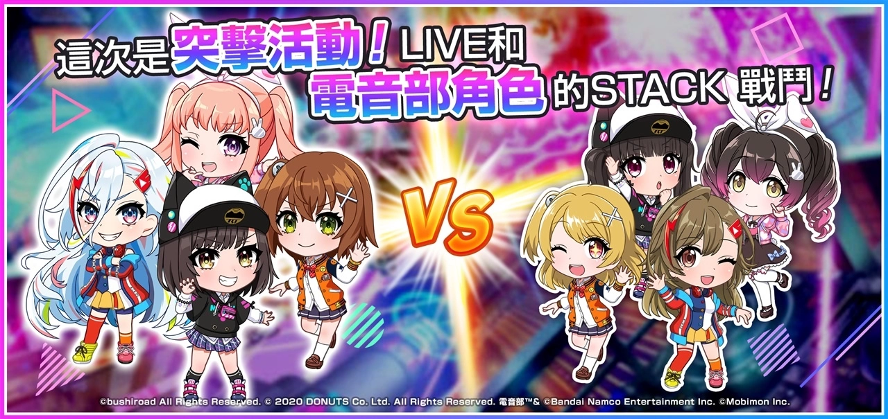 在活动期间内,和其他DJ们一起游玩「突击 LIVE」向电音部角色发起STACK战斗挑战吧!