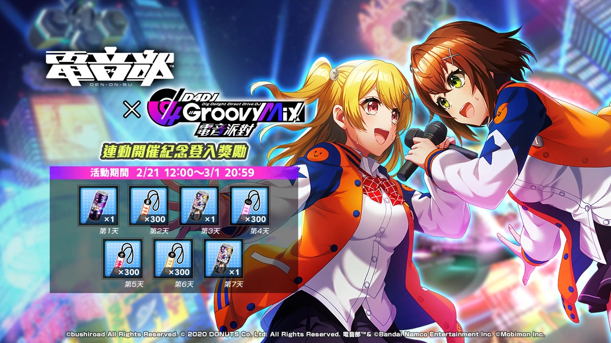 《D4DJ Groovy Mix 电音派对》于2/21起推出连动活动「电音部×D4DJ Dual Anthem-New Groovy-」。