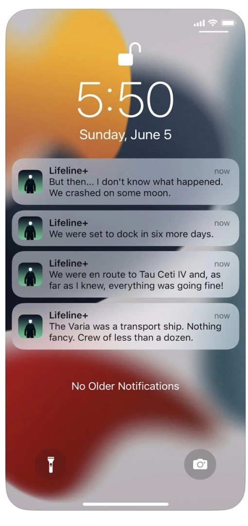 另一款将在本週五 2 月 24 日推出的《Lifeline+》,简单易懂的游戏名称「生命线」是基于文字和画面感所带出的独特冒险游戏。玩家要透过收到的文字讯息,设法解救飞船坠毁于未知星球的落难太空人泰勒,指引他方向、寻找回航设备和生存下来。