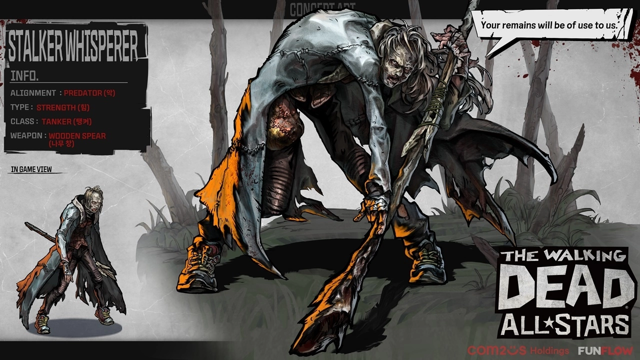 《阴尸路:全员出击》是由 FUNFLOW 和 Com2uS Holdings 联手打造的收集型 RPG手游。这款游戏以生动细腻的画风展现了《阴尸路》的末日氛围,以独特末日背景为特色,灵感来自原版漫画,融合了许多专为游戏打造的新角色。