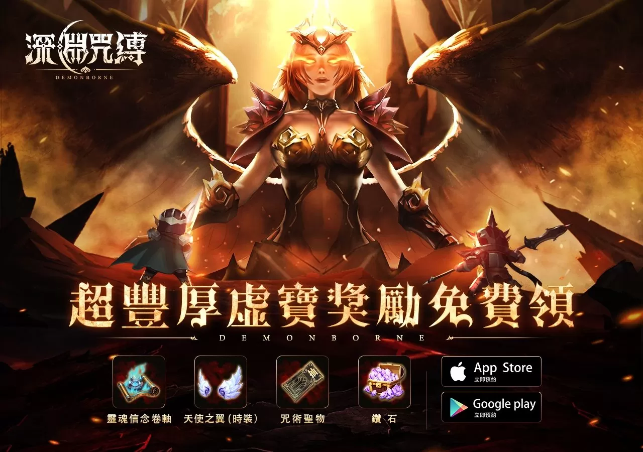 为了庆祝《深渊咒缚》预约正式开启,官方为所有玩家準备了预约好礼,现在参与预约,于开服后即可获得「天使之翼」、「咒术圣物」、「钻石」以及「灵魂信念捲轴」等丰厚的奖励。
