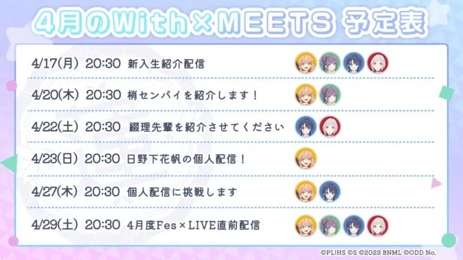 此外在官方 Youtube 频道上也公开了莲之空女学院 103 期新生入部纪念 Live 影片,她们四月份的活动表以及 5 月 1 日起开始的「2023 年 4 月度 Fes×LIVE」也同步曝光,喜欢《Love Live!》系列与莲之空女学院的成员们赶快去下载《Link!Like!Love Live!》来声援偶像们吧!
