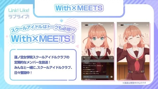 在抢先体验版中,用户可透过应用程式连接到《Love Live!》的世界并为自己喜欢的学园偶像声援,在独特的即时「校园行事曆」(スクールカレンダー)连动下,莲之空女学院成员们会在入学到毕业之间的有限时间内举办定期直播(「With×MEETS」)和现场表演(「Fes×LIVE」),并在「活动纪录」中了解少女们的故事。