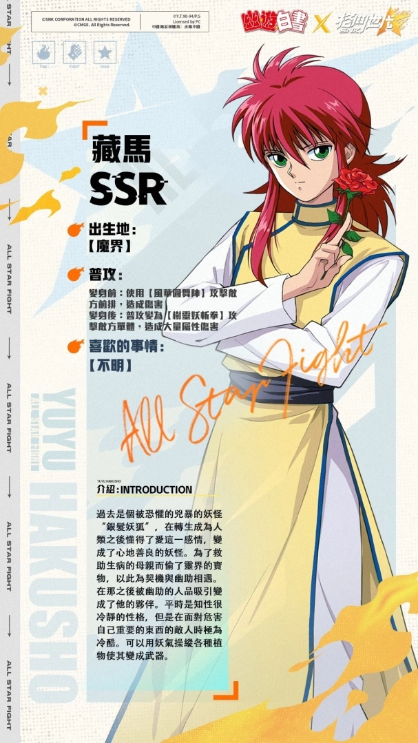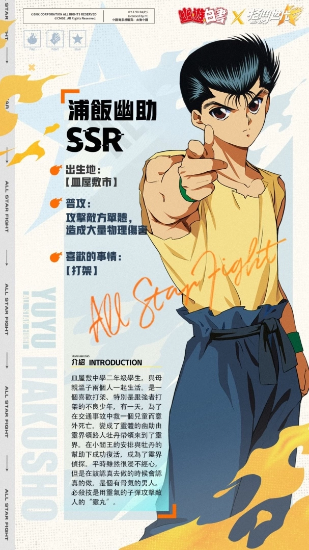 《SNK:格斗世代》X《幽游白书》震撼联动来袭《幽游白书》人气角色降临格斗之城