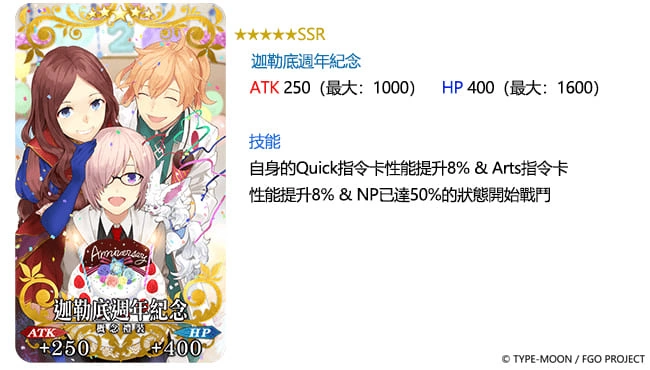 登场礼装「★5(SSR)迦勒底週年纪念」