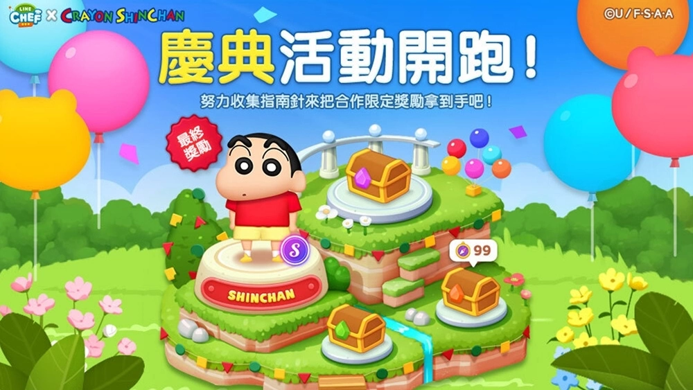 即日起全新庆典活动热闹开跑,现在只要通过一般关卡和红利关卡来收集「指南针」,就能把合作伙伴「小新」和「睡衣小新」通通带回家!大姊姊,想把「小新」带回家就趁现在唷!