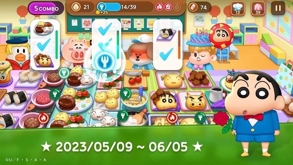 《蜡笔小新》的角色们化身为限定合作伙伴陪你动感上菜!还有特别关卡等你来挑战!