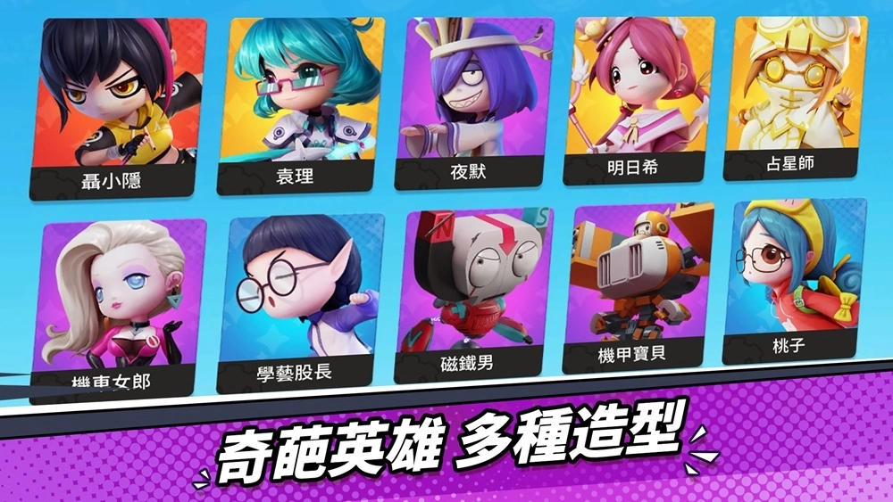 众多英雄任君挑选,一定有适合你的英雄,还有各种特殊的精美造型可以收集。在战场之中,你就是最耀眼的战斗家!