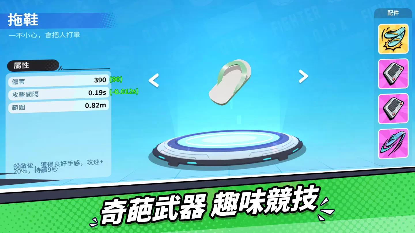 在生活中的各种物品都变成游戏里面的武器,让乱斗更有趣。收集不同的武器配件还能让武器拥有不一样的效果,金色的配件还拥有超强力的特性,以及不同主题的武器造型。