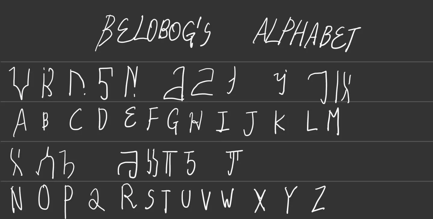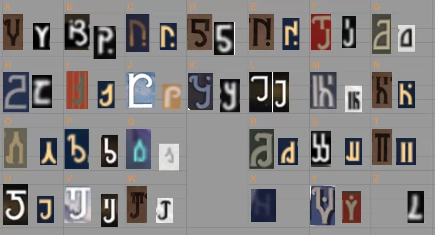 当玩家到达雅利洛-VI星球的城市贝洛伯格时,许多路标或招牌都写上了当地文字。依照米哈游往常游戏做法,这些文字通常都由英文字母进行变体,只要找到对应单字即可做成对照表。在认真的粉丝们寻找挖掘之下,该对应表也逐渐完备。