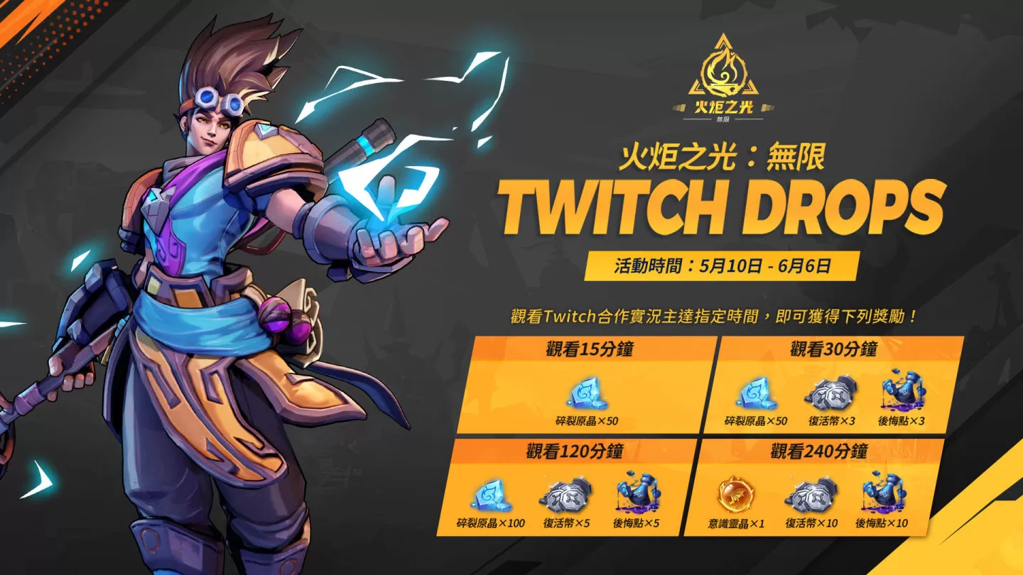 《火炬之光:无限》与 Twitch 携手合作,自 5 月 10 日至 6 月 6 日举办全球赛季上线首月的 Twitch Drops 活动。玩家只需在活动期间观看带有 Torchlight Infinite 标籤的实况主直播,即可获得丰富的观看奖励。请注意,参加活动前需先绑定帐号并在后台开启 Drops 功能。