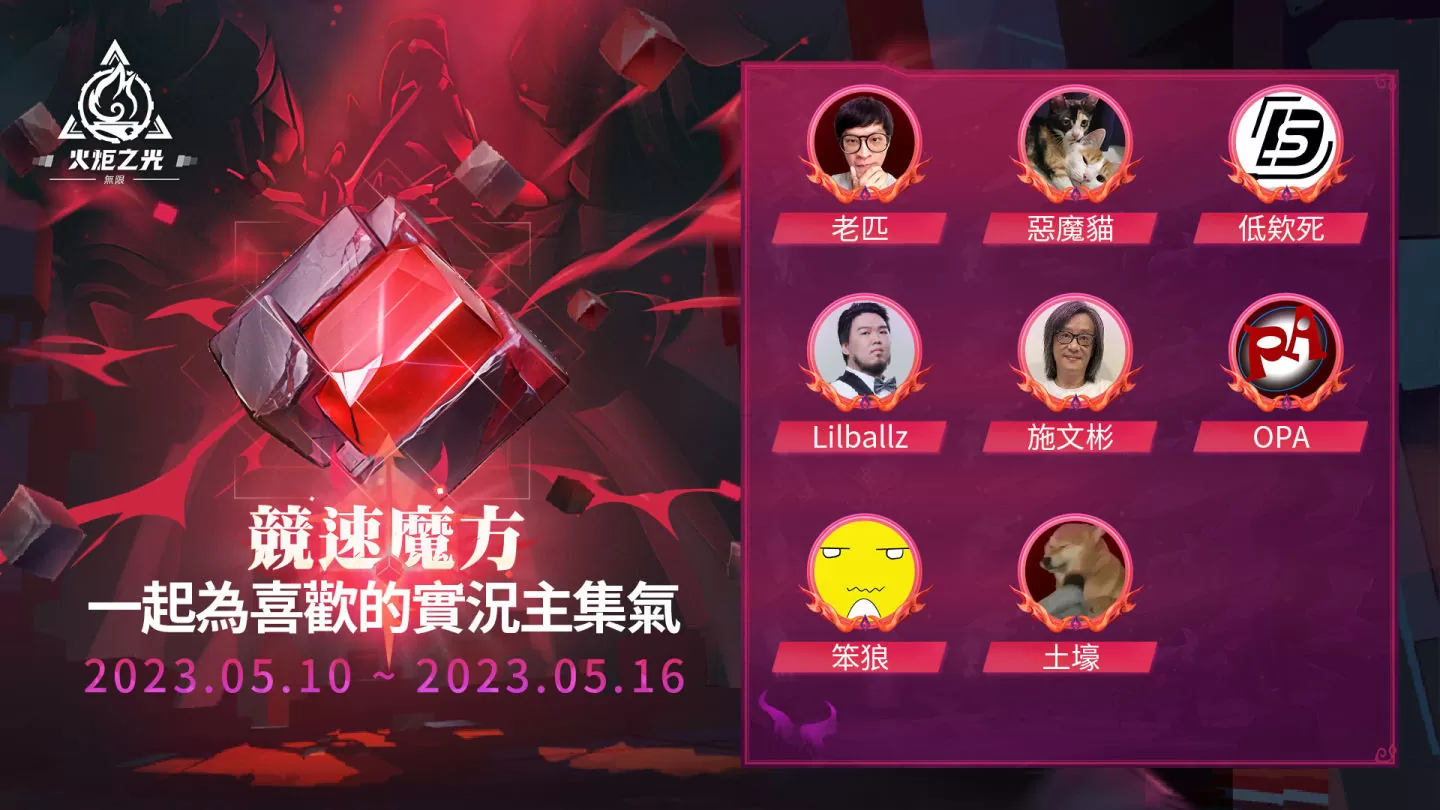 老匹是火炬港澳台伺服器的历届首杀竞赛冠军,开台时数极长的爆肝魔人,喜欢长时间看台的玩家看老匹台準没错!恶魔猫擅长辛辣言论,同时也是召唤流派的专精玩家,这次新增的统御值想必能为恶魔猫在竞速挑战上带来不小的优势。另外低欸死、OPA、笨狼以及土壕这几位也都是《火炬之光:无限》中大名鼎鼎的高手玩家,比赛精采可期,还请玩家不要错过!