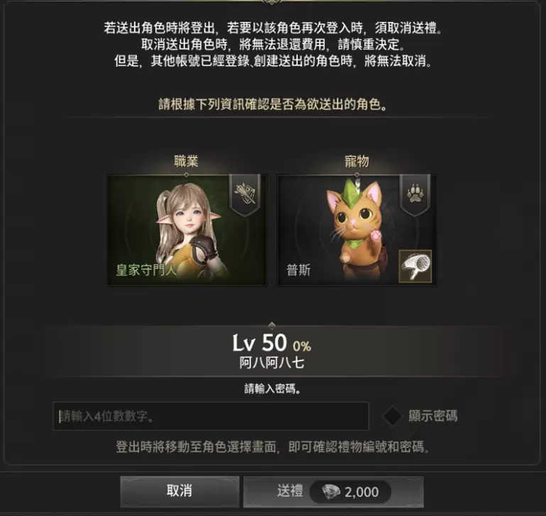 那若是有一天想要将角色的遗志传承给其他人呢?游戏中也很贴心的推出了角色转让系统,玩家将可透过赠与的方式安全且轻鬆的将角色无痛移转给想要赠送的朋友,而不用再把自己的帐号资讯一併赠送出去了!所有角色相关的各种系统内容与收藏进度都会完整的移入受赠者的帐号中,再也不用担心辛苦经营的心血无人可继承的困扰。
