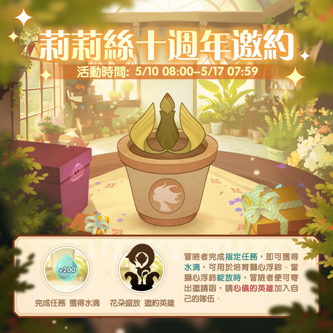 为了感谢广大玩家一直以来的陪伴与支持,官方宣布于 Lilith Games 十週年之际,推出系列庆典活动与全服玩家一起普天同庆,将以大量钻石等多项限定虚宝回馈玩家,更多福利内容等着你到游戏内解锁体验!