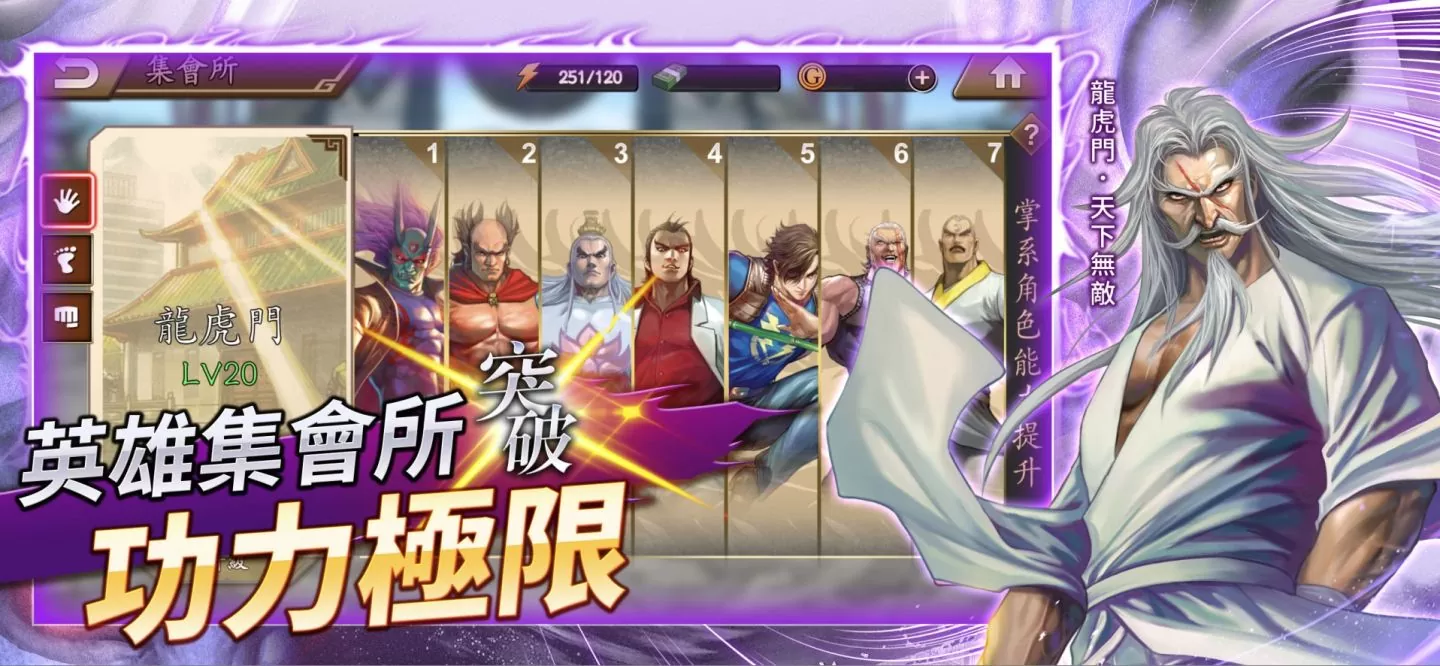 全新系统集合众人之力突破功力极限,路人角色不再是仓管。万佛寺、天子峰、元始岛各种原作着名地点化身「英雄集会所」,待玩家解锁列位放置角色提高整体战力,如放置拳法角色即可提升拳法角色战力,从而组成更千变万化的队伍,锄奸伏邪!