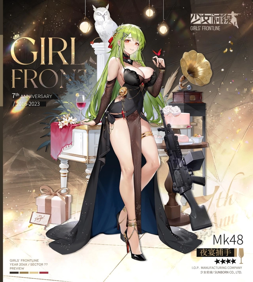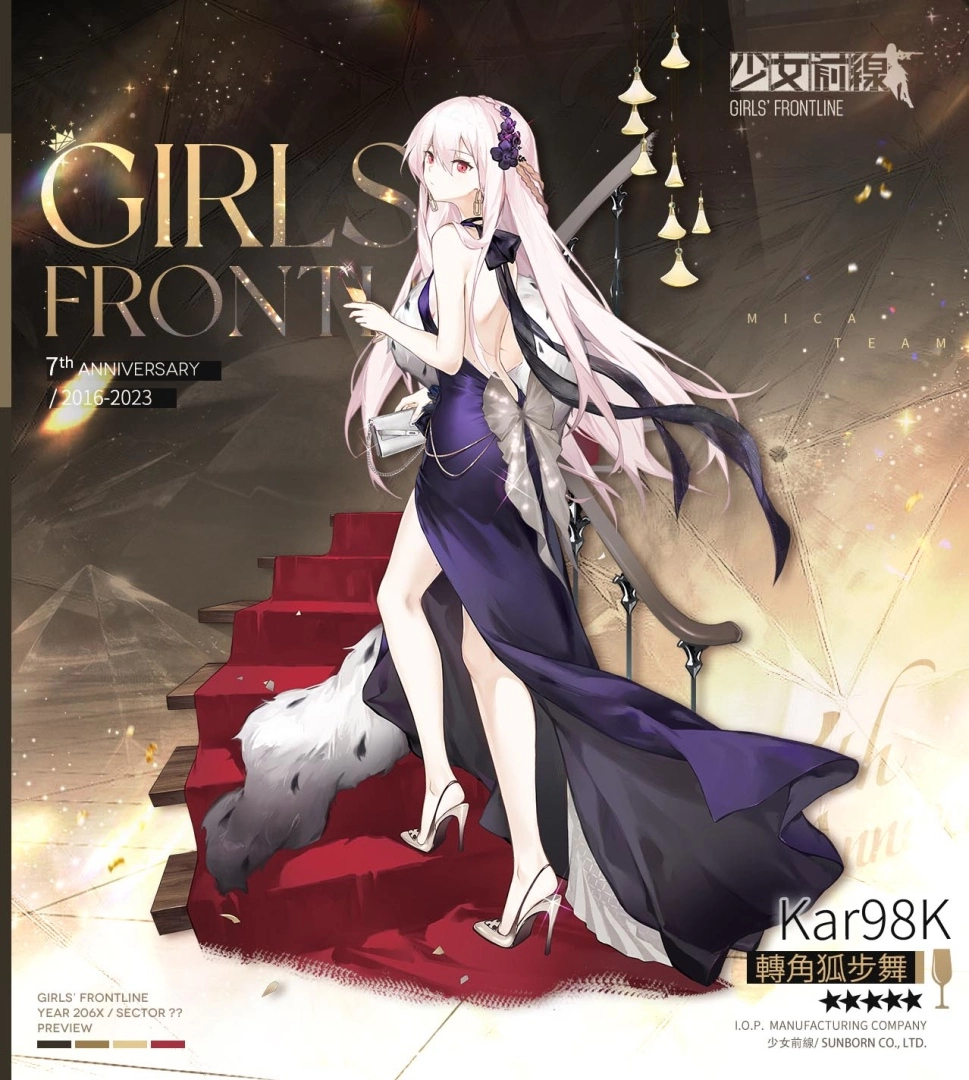 一年一度的盛宴,即将开幕,指挥官你準备好了吗?此次推出的「期年之宴」主题装扮,共包含「Kar98k-转角狐步舞」、「SR-2-浮沫终结者」、「Mk48-夜宴捕手」、「9A-91-追藏的秘密」、「MG36-葛根姜骑士」、「沙漠之鹰-玫瑰莺语」、「HS.50-沉醉雪晶」等七位人形的装扮。