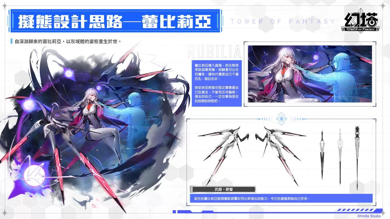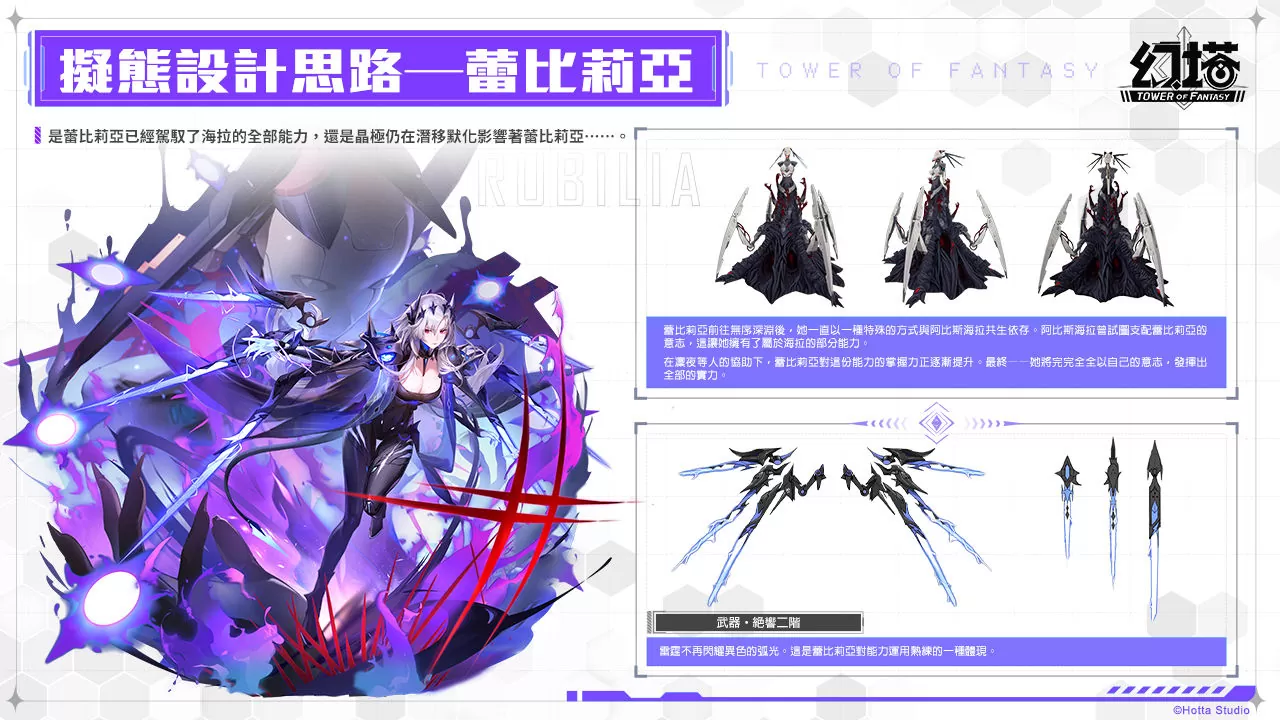 製作团队在构思蕾比莉亚的角色设定时,结合灰域体的元素,无论是造型外观或武器都有许多巧思。