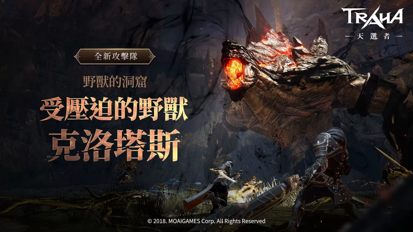 全新攻击队副本「野兽的洞窟」也将在本次更新登场,玩家们组成攻击队后进入场景,将直接与遭到监禁的强力 BOSS「克洛塔斯」正面对决!而「克洛塔斯」并非泛泛之辈,虽然遭到禁锢,但是求生、愤怒与毁灭已经成为他唯一的生存目标,玩家们除了拿出毫无保留的战斗力与集中力外,更必须活用场地设计机制才能克敌制胜。
