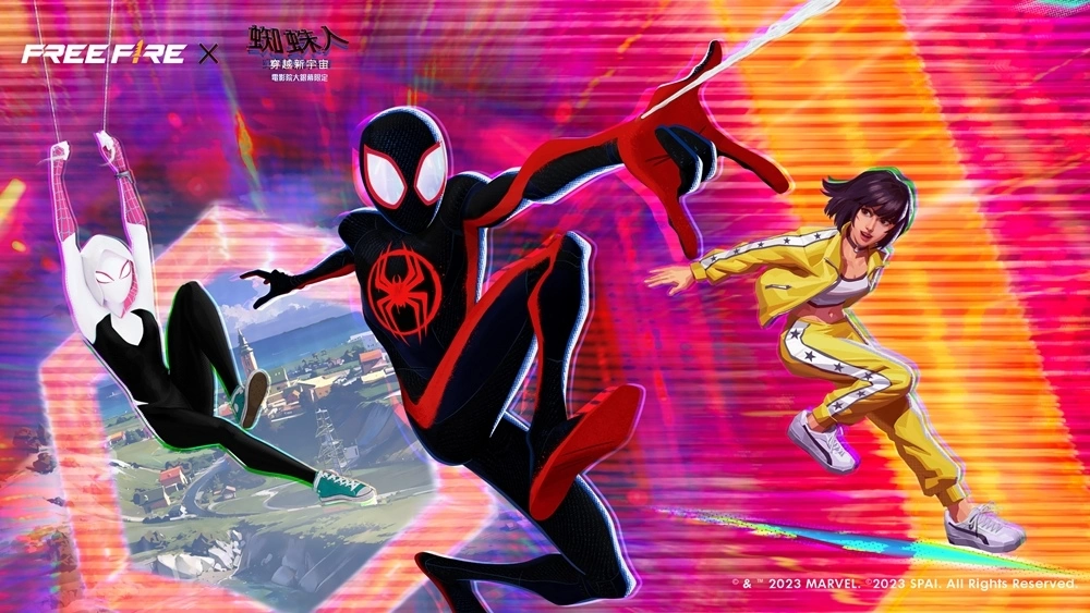 此次的联名活动将介绍电影中的三位主要角色 — 蜘蛛人迈尔斯、女蜘蛛人关以及蜘蛛人 2099 — 带入《Free Fire》游戏中,与热门角色凯莉、士郎以及马克西姆一起出现。当电影角色与他们的新朋友穿越《Free Fire》 宇宙时,将带给勇气跟团结的力量给所有《Free Fire》 的生存者们,鼓励他们发挥自己的超级英雄潜能、写下自己的故事!