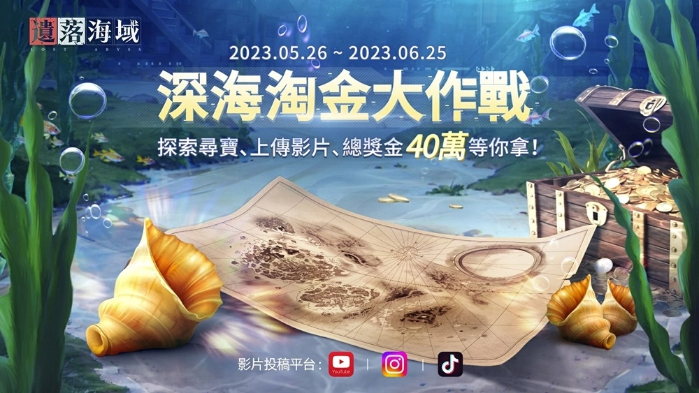 在寻宝过程中,玩家可记录寻宝探险过程,透过直播或是创意影片製作的方式上传到Youtube、Instagram、Tiktok等平台,并至「深海淘金大作战」活动网站报名申请,就有机会获得丰厚的现金奖励和冲刺游戏内「深海摄影家」限定头像框。除了播放数奖项外,为鼓励创意内容投稿,官方也规划了优选奖、新人主播应援奖等奖项,超过40万台币高额总奖金等你来挑战!活动报名请留意官方粉专最新消息。