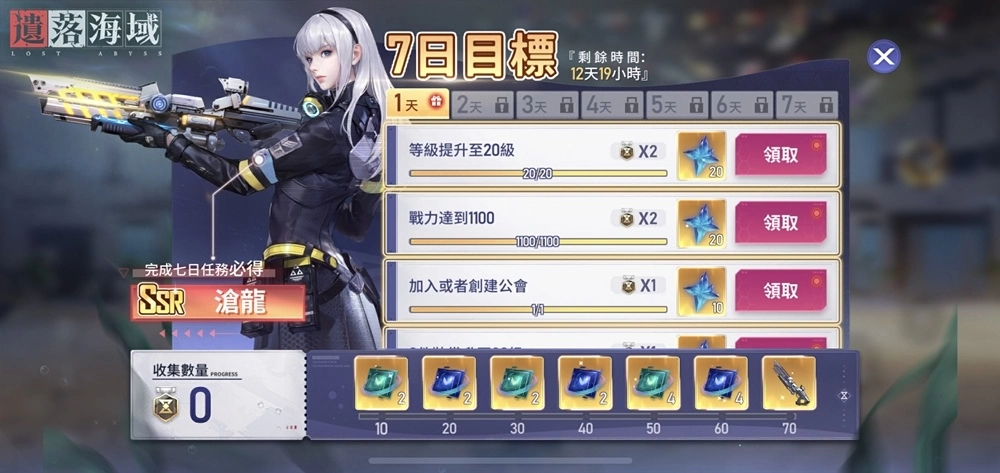 此外,还有「七日目标」活动,完成每日任务可获得「元灵扭蛋券」及「装备扭蛋券」。达成七日目标任务更可直接获得SSR武器「突击步枪沧龙」,想在前期提升武力军备的玩家千万不要错过。