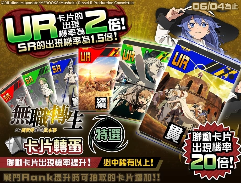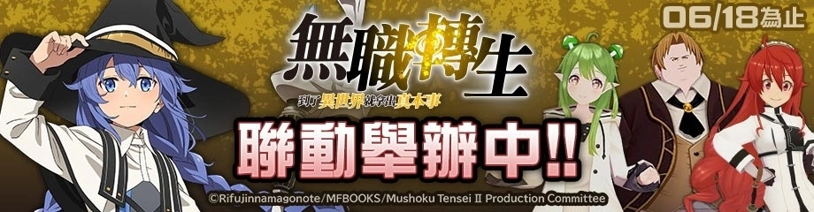 新联动英雄「洛琪希.米格路迪亚」参战!2023 年 5 月 29 日(一)~2023 年 6 月 18 日(日)为止,期间限定举办 UR&SR 出现率提高的特选卡片转蛋,英雄转蛋,登入奖励等联动纪念活动!请尽情享受《#空帕斯》与《无职转生》的世界吧!