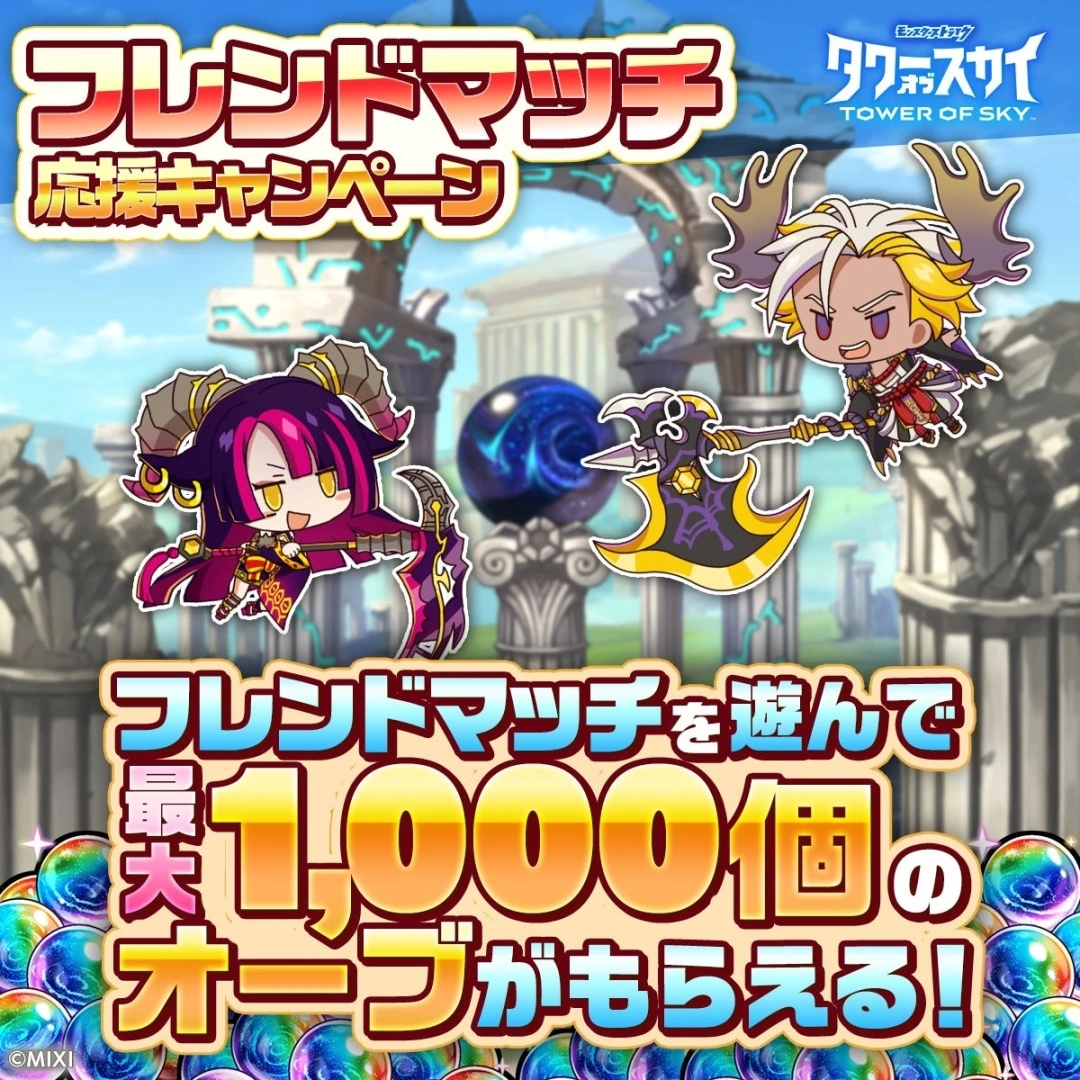 《Tower of Sky 天空之塔》为 mixi 继《Monster Strike 怪物弹珠》之后所推出,号称玩法类型为「高塔堆叠益智 RPG」的方块累积型益智角色扮演游戏。在游戏中,玩法规则非常简单,玩家只要不断累积方块作出高塔,并让高塔超过话面上的攻击线,角色们就会发动攻击对敌人展开攻势。