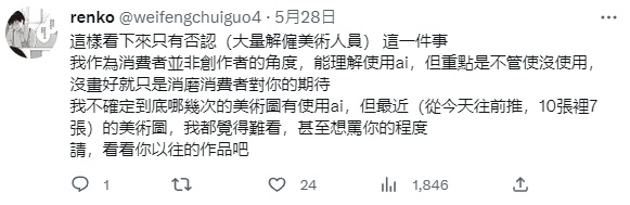 该澄清声明也在社群中引起迴响,海内外网友相当高比例对其表示不满,除较为情绪化发言之外,也对其美术表现差异,或是 AI 发展方针提出批评。