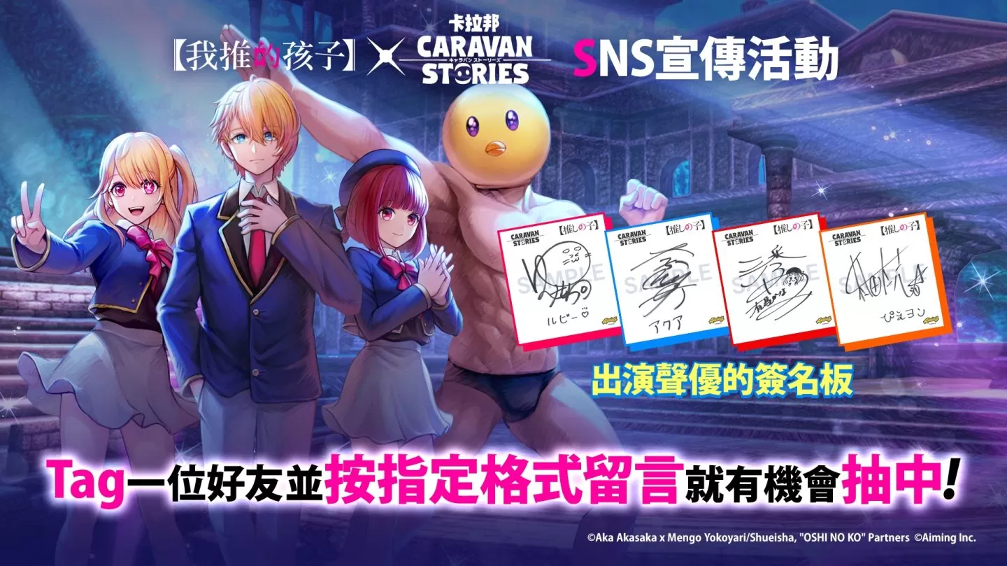 日商艾鸣网路游戏公司旗下自製奇幻冒险 MMORPG《卡拉邦 CARAVAN STORIES》,自 2023 年 5 月 30 日(二)维护结束后~2023 年 6 月 20 日(二)维护开始前在全平台与动画《我推的孩子》举办合作活动。