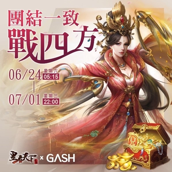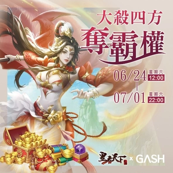 6 月 24 日 PM 09:00,三位实况主将一同在《皇者天下》开服当日线上直播,与大家分享如何参与「《皇者天下》X GASH霸权争夺战」一系列活动,和专属军师推荐的新手养成攻略。