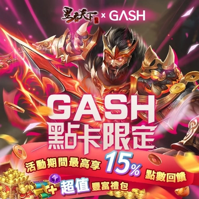 玩家们使用 GASH 点数卡单笔储值满万元,立即回馈 GASH 点数 1000 点 (活动回馈数量有限赠完为止)