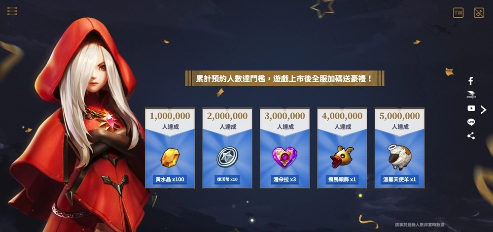 为庆祝《龙之谷2:进化》预注册正式上线,每当预注册人数累积达一定门槛,游戏将加码赠送玩家更稀有珍贵的游戏豪礼。以下为玩家在活动期间可解锁奖励的人数目标:
