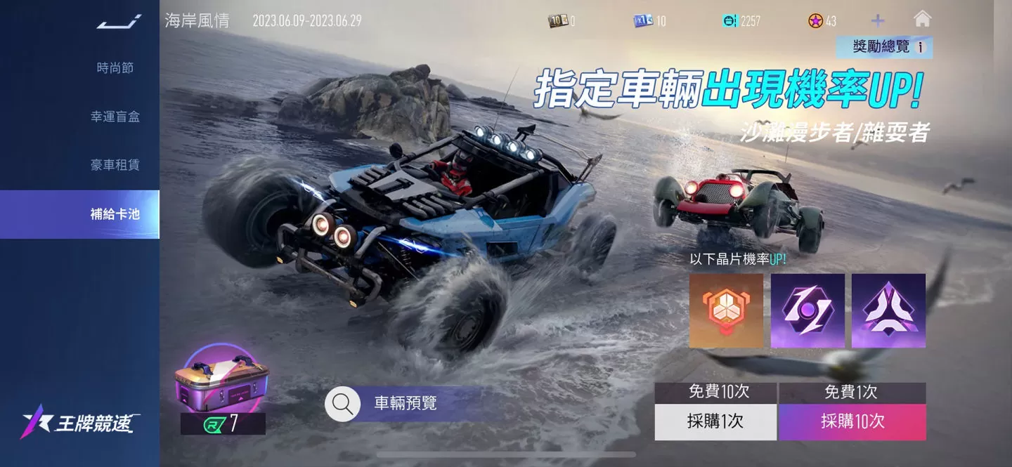 补给箱开启海岸风情专题!拥有全新技能「扬沙」的传说干扰车辆沙滩漫步者以及史诗辅助车辆杂耍者在活动期间获取机率提升!
