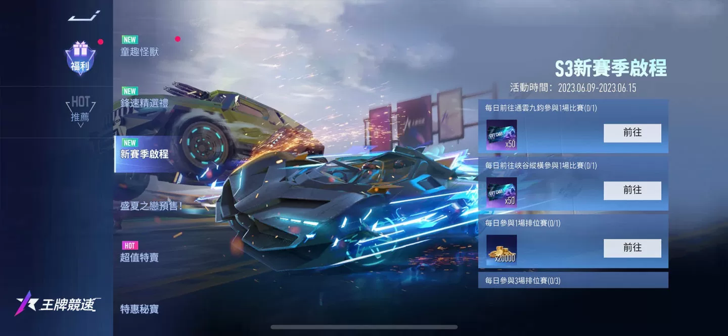 现在就加入王牌竞速S3全新赛季机械降神,在盛夏庆典尽情飙车竞速!更多活动详细资讯请前往官方粉丝团详阅。