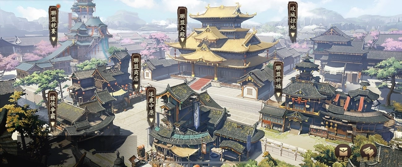 逐鹿中原是需要多联盟玩家同一战场的跨服匹配竞技玩法。多个伺服器分为一个战区,每次比赛为战区内联盟进行匹配,每 6 个联盟分为一组,每次比赛持续 1 周,每 4 周为 1 个赛季。整个战场中的各区域拥有城池、关隘等建筑,大家需要布阵进攻并佔领联盟管理者标记的目标地块、城池、关隘,以及敌方联盟的守军。