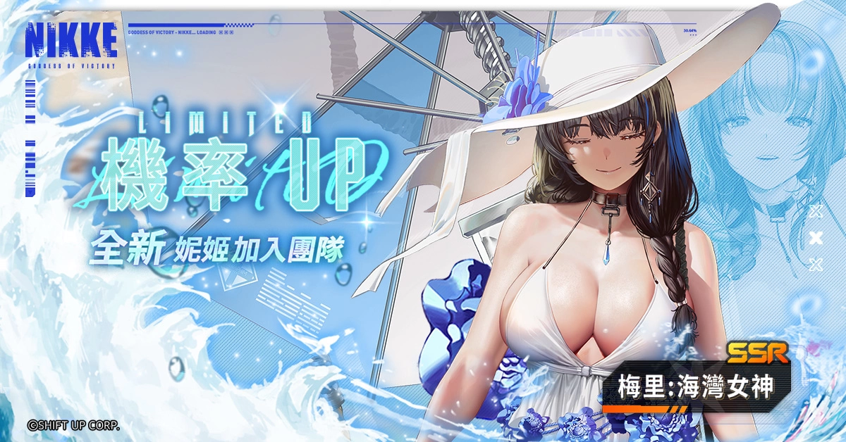 《胜利女神:妮姬》于本次更新后,梅里将以夏日限定型态「梅里:海湾女神」登场!该妮姬生产公司为泰特拉,隶属六翼天使部队,元素为水冷,武器为狙击步枪,是辅助型角色。