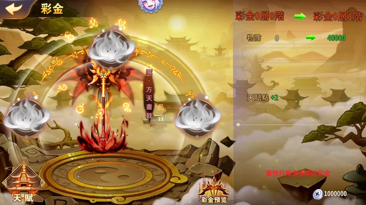 神兵伴主彩金突破!主角等级达 180 级,即开放紫金神兵晋升彩金。神兵晋升彩金共分为 3 大阶,每阶有8级,每级消耗「九转镔铁」进行升级,第 4、8 级额外消耗「八卦炉」进行突破,这两项道具分别可在可以分别在神兵商店和仙途商店中购买。
