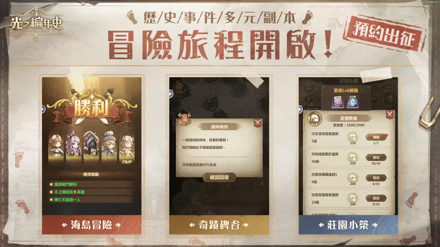 游戏内亦有多种疗癒轻鬆玩法的副本。富含中世纪庄园领地精神的副本【庄园小筑】中,玩家可以成为中古领主,在自己的领地内开发贸易、农业经济,更能与敌军交涉,让自己的庄园越来越繁荣,累积更多可以使用在主线任务或是其他副本的财富。更多的副本玩法,等待玩家登入开发,先预约一波领取你的冒险基金吧!