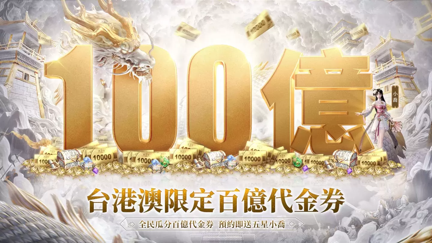 《天命三国志》事前登录活动正式开跑,同步开启百亿代金券瓜分活动,全民瓜分 10000000000 代金券。玩家完成预约即可获得 10000 代金券,参与天命轮转等活动还能额外获得 90000 代金券。提醒各位预约玩家每日登入参与活动,会有超高机率获得劳力士绿水鬼手錶最新版、响威士忌 30 年花鸟风月特别版、萨尔达王国之泪 Switch OLED 特别版主机、iPhone 14 Pro max 等众多好礼!