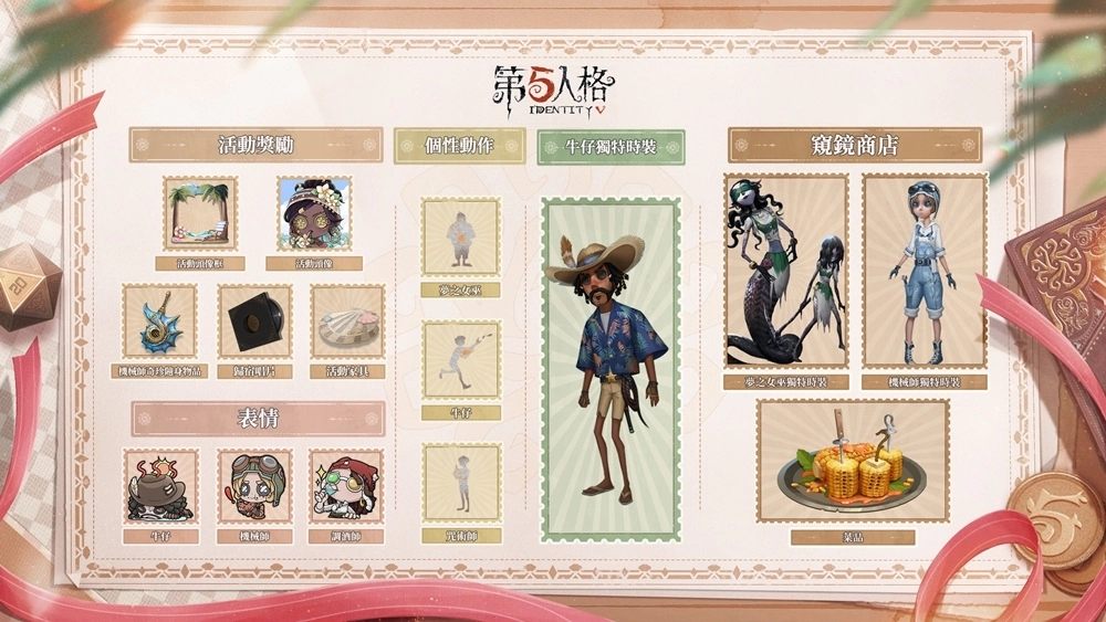 更多宝藏,等你发掘。记得在 6 月 29 日登录《第五人格》,和牛仔一起探访海岛!